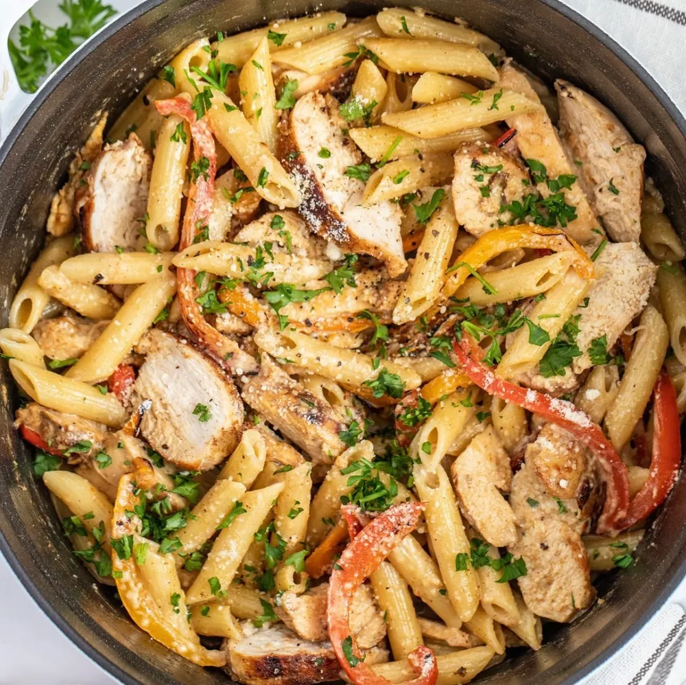 A creamy pasta tossed with Jamaican jerk chicken and sautéed bell peppers. Creamy, rich spicy dish full of flavor.